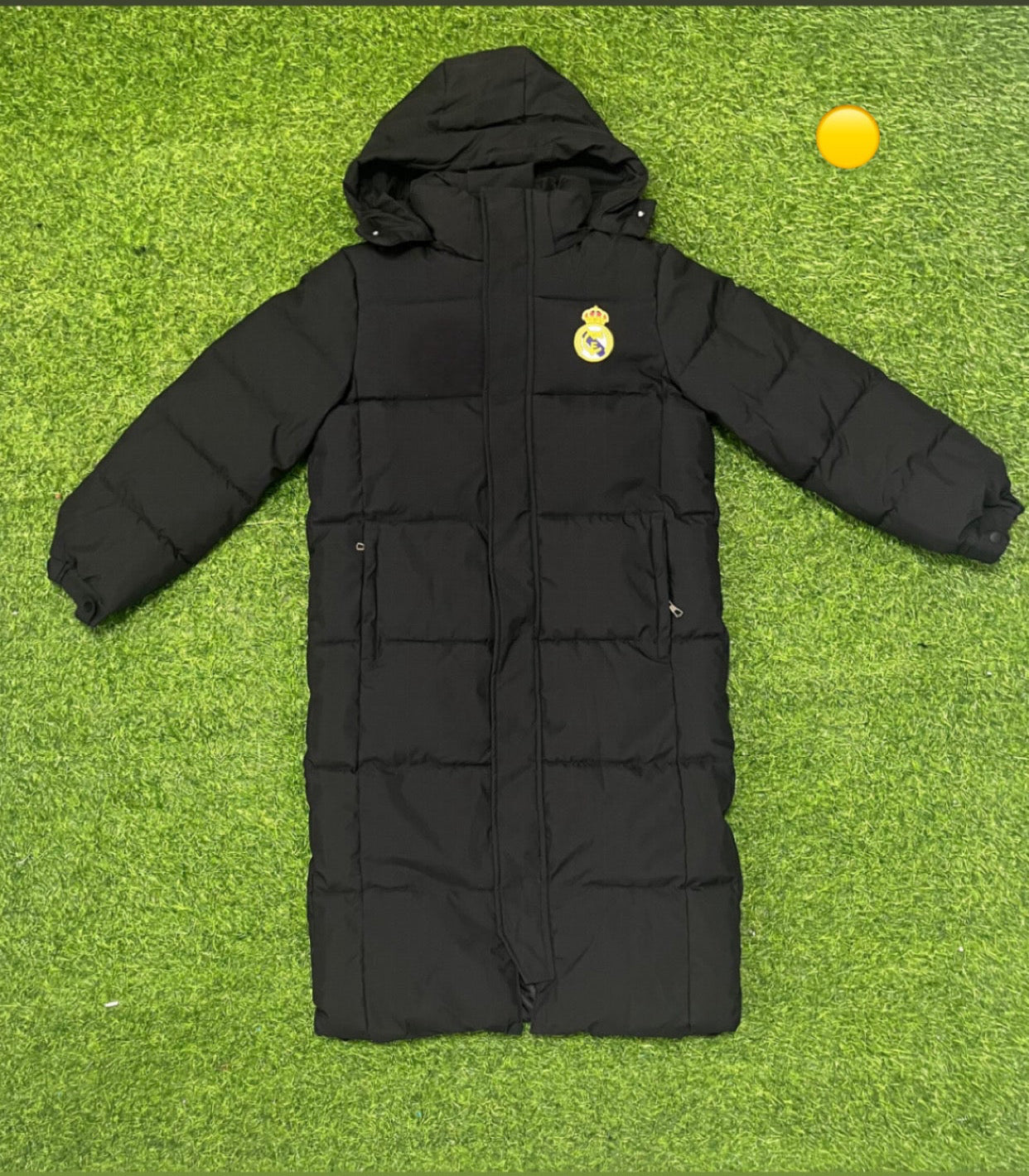 Den kraftigt vadderade konstruktionen och extra långa passformen ger maximal värme, medan den ikoniska Real Madrid–loggan lyfter looken till kunglig klass.