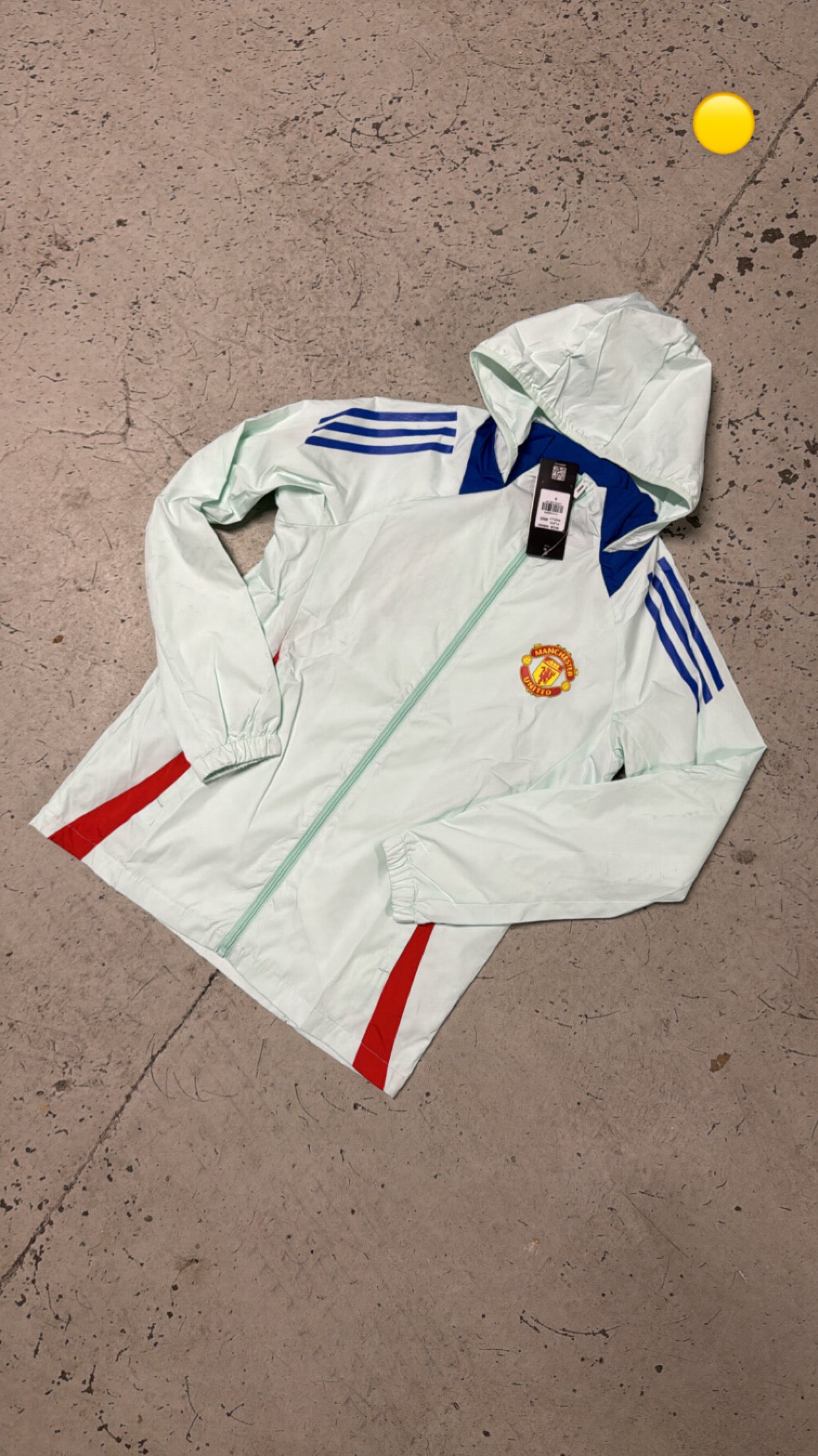 Vår Manchester United Neon Edition är en ljusblå windbreaker med iögonfallande röda och mörkblå detaljer – en unik twist på klassiska United-färger. Lätt, smidig och perfekt för kyliga höstdagar, matchdagar eller när du vill ha en jacka som verkligen syns. Den här är inte bara en windbreaker, det är ett statement.